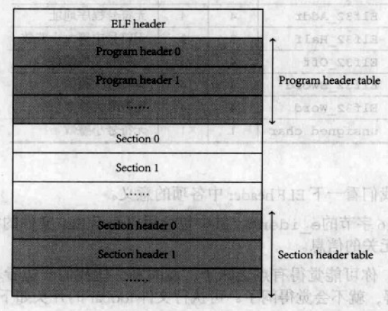 ELF 文件由 4 部分组成,分别是 ELF 头、程序头表、节和节头表。其中,只有 ELF 头的位置是固定的。